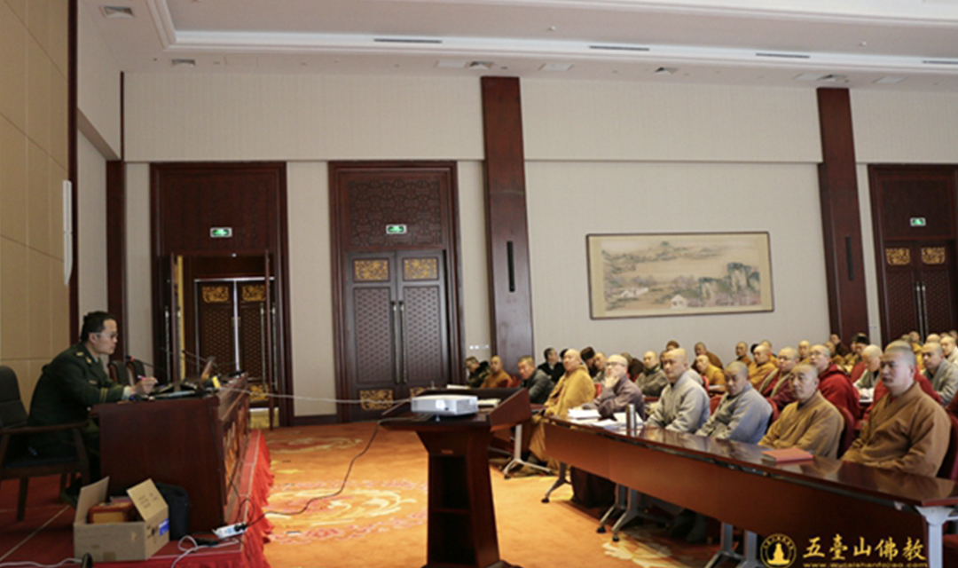 五台山举办全山寺院消防安全培训暨消防演练 五台山全山各寺僧众认真学习消防安全知识 消防培训会现场...