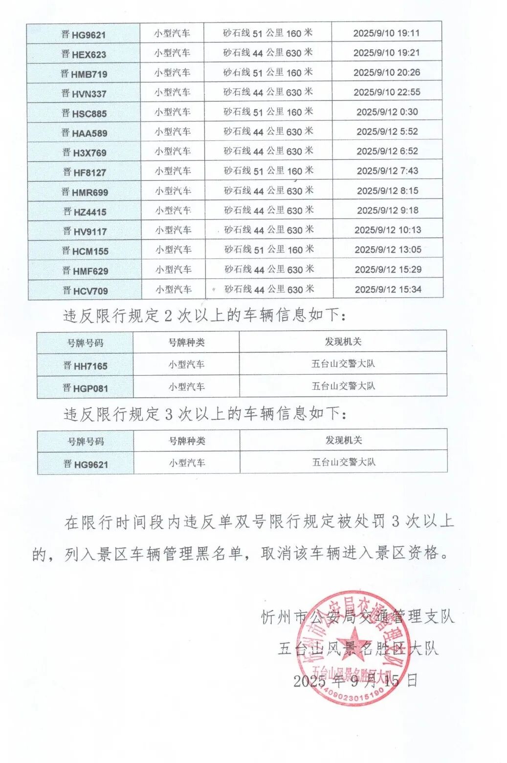 五台山景区自有车辆违反限行规定的车辆曝光