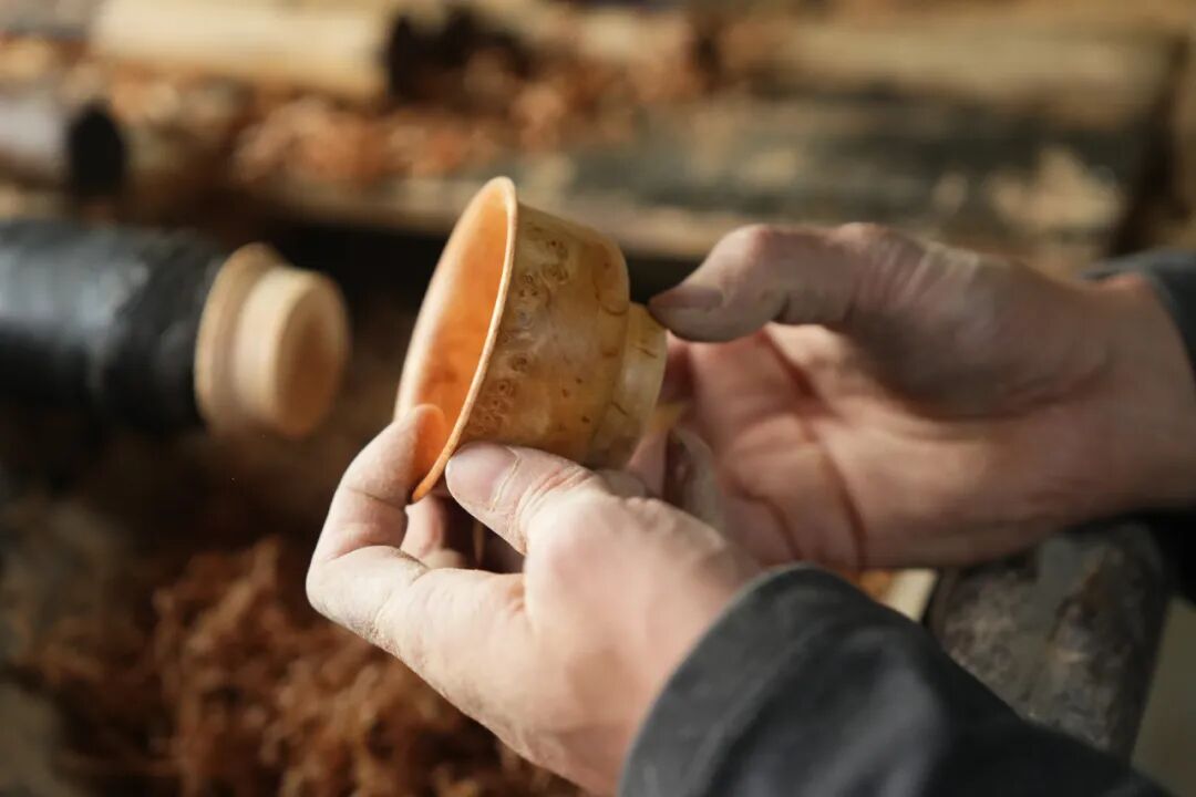传统手工木碗手艺人张斌古法旋刻木碗