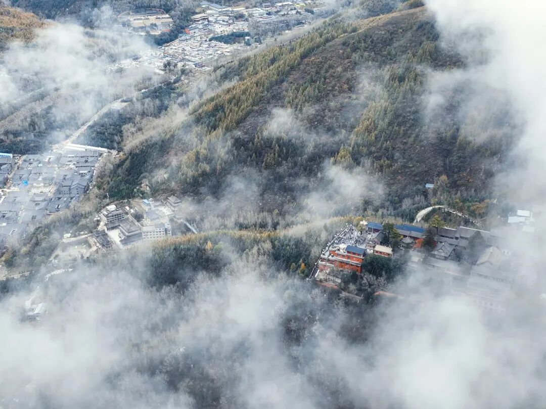 山峦层层叠叠,从翠绿到金黄,再到深红,大自然在这里调出了最浓烈的色彩。台怀镇的红墙黛瓦掩映其中,随手一拍,都是不需要滤镜的大片。