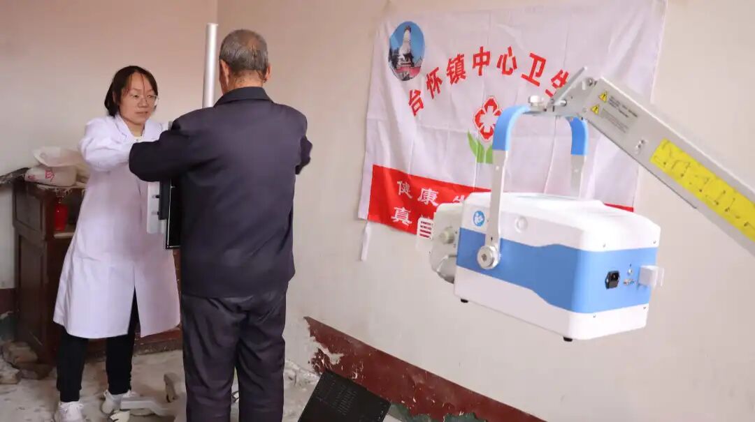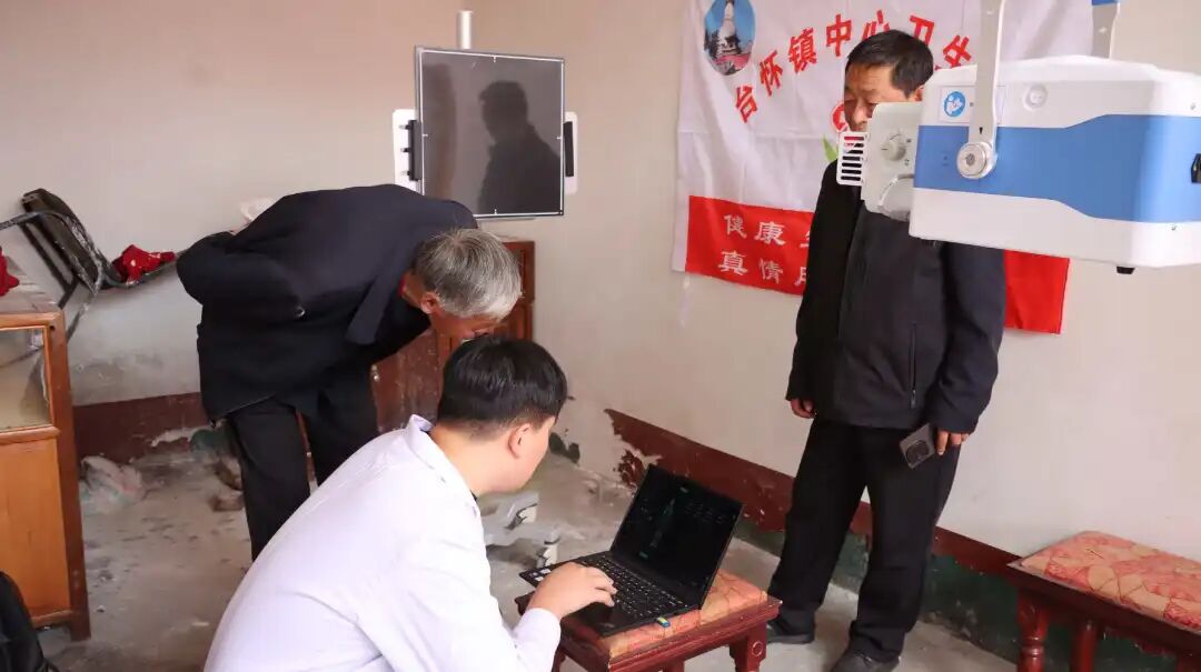 此次随访中,卫生院还特意将便携式DR机送入村头。机器启动时,村民围拢过来,争相体验“不用出村就能拍片子”的便利。设备屏幕上的心肺影像清晰可见,让大家即刻享受到专业医疗检查,这种“移动式体检”让村民们直呼“暖心”。