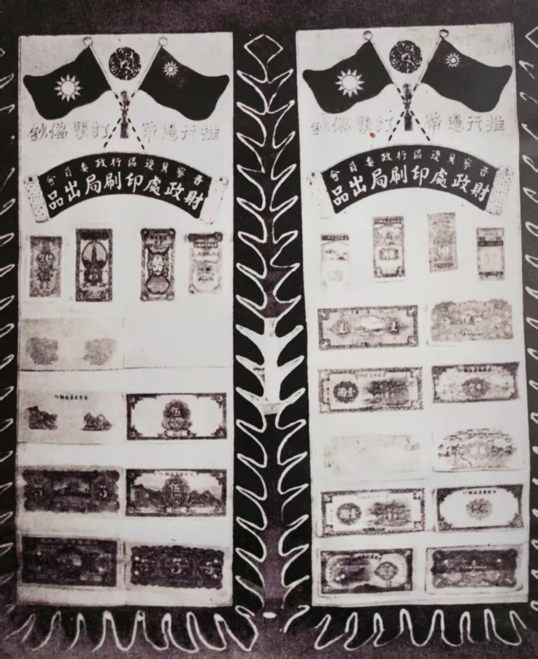 边区政府发行的边币、军用粮票、救国公债票样