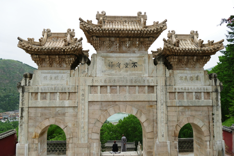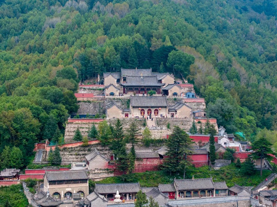 南山寺,北距台怀约2公里,依山势而建,海拔在1700米以上,共有殿堂窑房300余间,占地6公顷,规模很大,而且悬于陡峭山坡,更增添了宏伟气势。