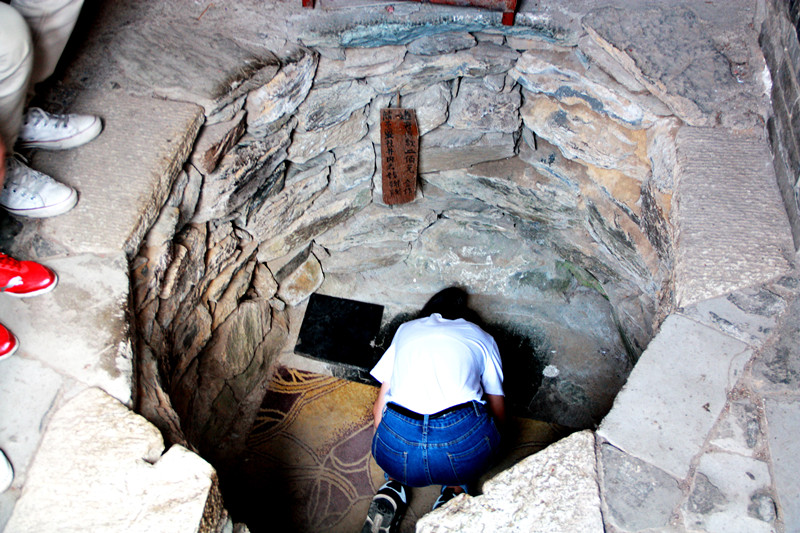 有传闻,在水池中能看到佛、菩萨或者自己的前世,图为游客排队等候在明月池观影