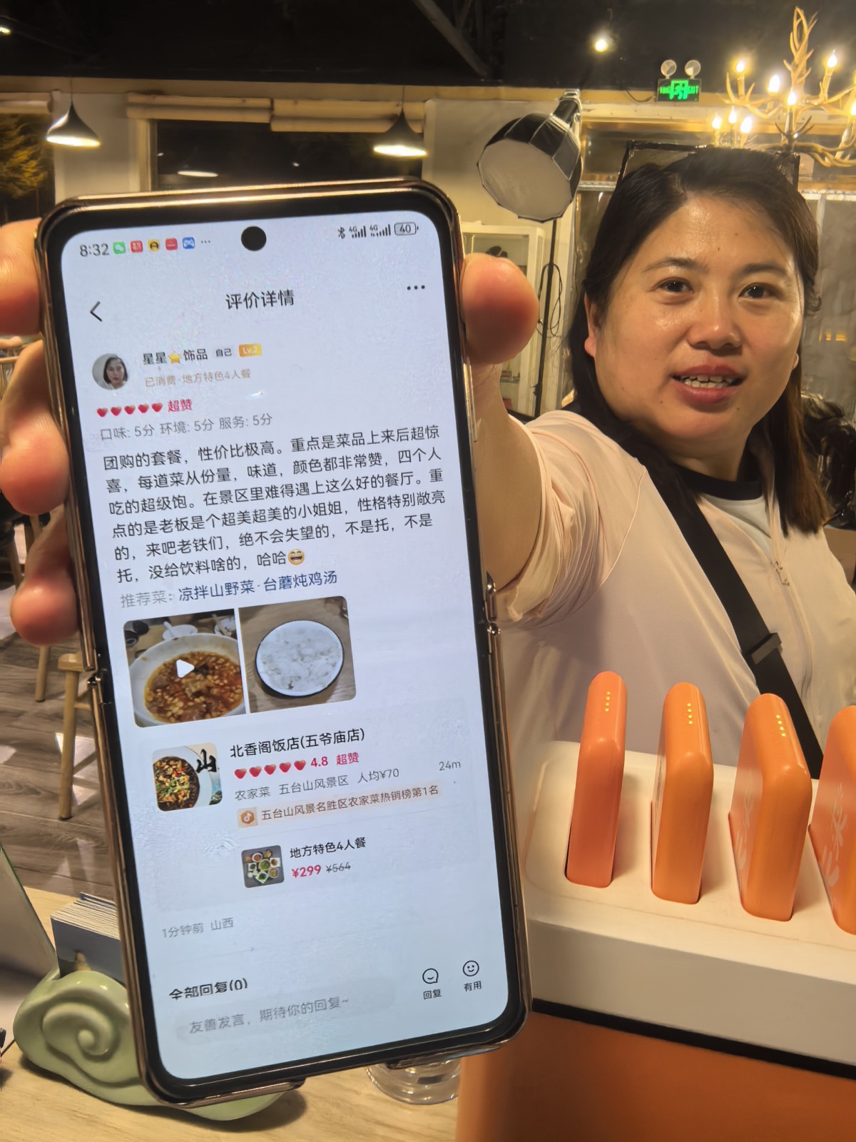 提到有没有印象深刻的客人,她说:“有一次,一位外地游客在店里用餐后匆匆离开,将装有一万现金的钱包遗落在座位上,服务员在收拾餐桌时发现了钱包。深知这笔钱对游客的重要性,我赶紧查看消费记录,通过支付信息添加了顾客微信。当联系上顾客并告知情况时,电话那头的顾客又惊又喜,随后我将钱包中的现金如数通过微信转账给顾客。后来这位顾客每年来五台山都会来我们家饭店吃饭,还给我介绍了不少亲朋好友。”