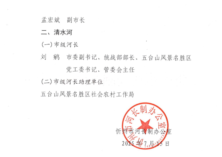 各县(市、区)人民政府、河长办,五台山风景名胜区管委会、河长办,市河湖长制局际联席会议成员单位:
